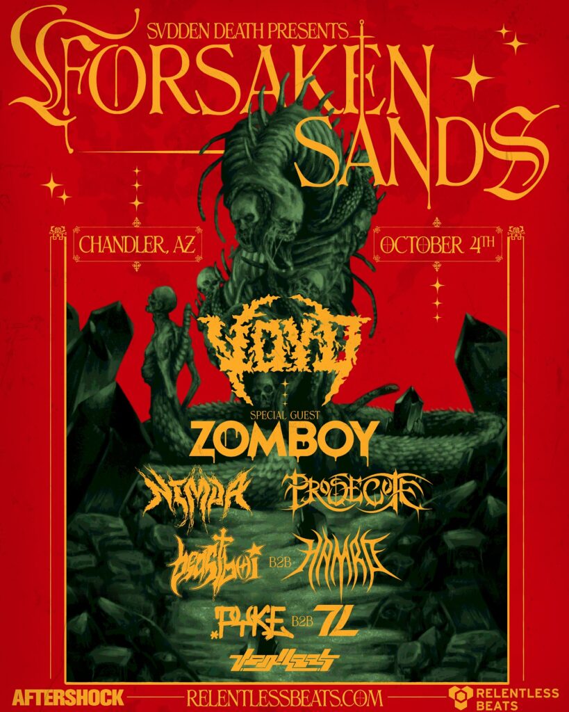 Aftershock & Relentless Beats presents Svdden Death VOYD | Forsaken Sands on Saturday, October 4, 2025 at Wild Horse Pass Festival Grounds in Chandler, AZ. This show is 18+.
